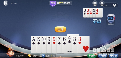 第157关先打出一张J,跑得快打出一张A。