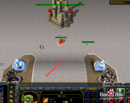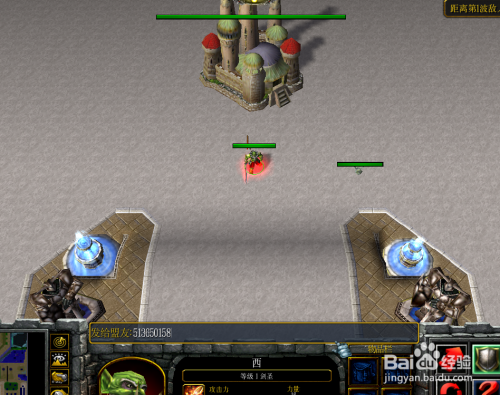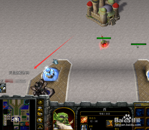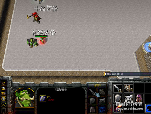 有了金币后,英雄到游戏的左下角找到初级装备NPC,进行采办初级装备,如下图所示。