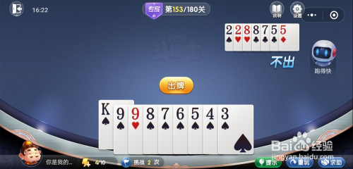跑得快打出一张7,我打出一张9,接着打出3-8顺子就过关了。