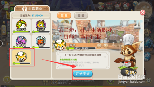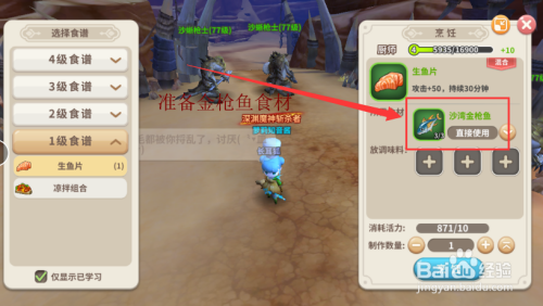 筹办好金枪鱼食材今后,打开糊口职业“厨师”的操作面板。