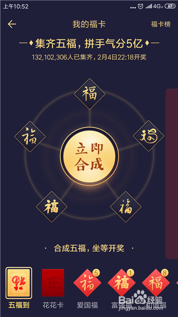 点击后在中心可以看到【当即合当作】按钮,点击起头合当作五福到。