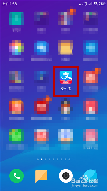 在手机桌面上找到付出宝并点击打开,如图所示。