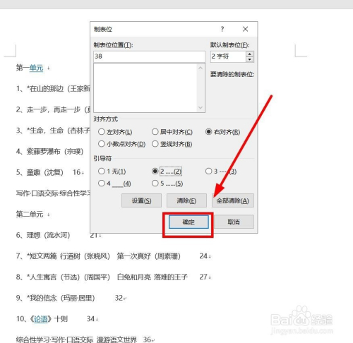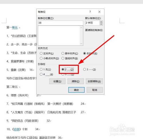 若是文档最左边的数字是“38”,我们就在“制表位位置”下面输入“38”