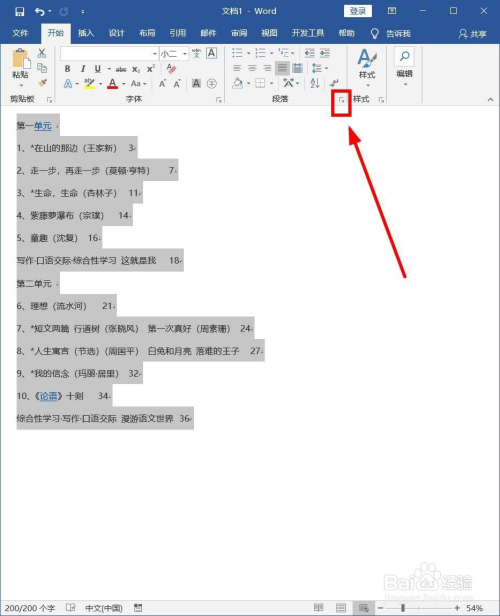 在菜单栏“段落”选项右下角找到小斜箭头单击
