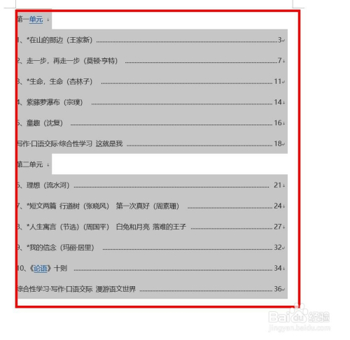 在每一个内容部门和页码毗连处用“制表符”毗连,也就是插入“TAB键”。例如在“(王家新)后面按一次“TAB”键”