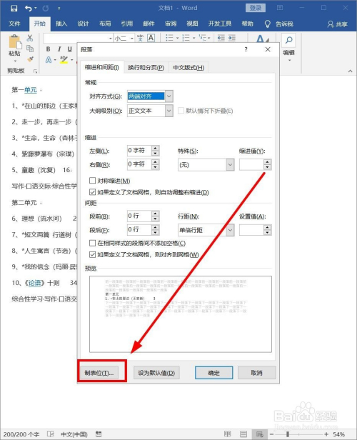 在弹出的“段落”对话框,“缩进和间距”选项卡左下角找到“制表位”单击