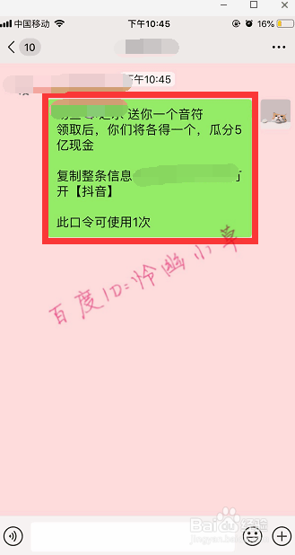 打开微信或qq等,进入老友聊天界面,把信息发送给老友,老友复制信息打开抖音,接管邀请后两边都可获得一个音符。