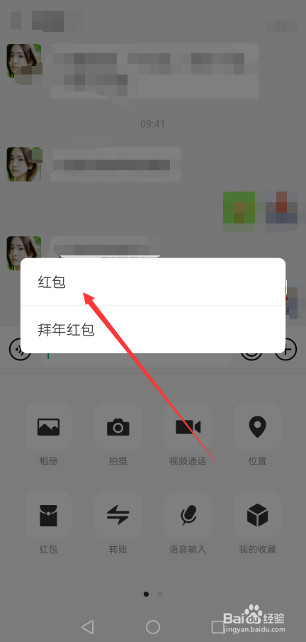 然后在弹出红包对话框里直接点击【红包】,如下图所示。