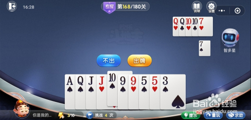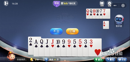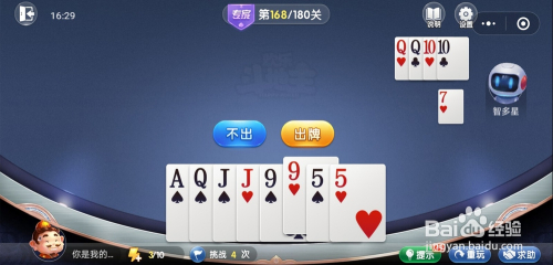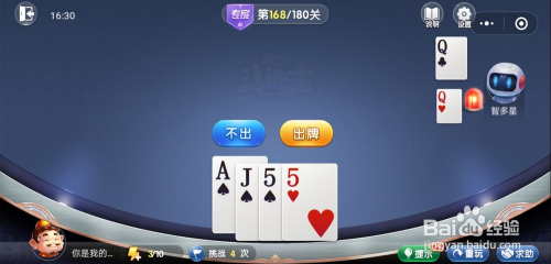 智多星打出一张Q,我打出一张A,接着打出一对5一张J就过关了。
