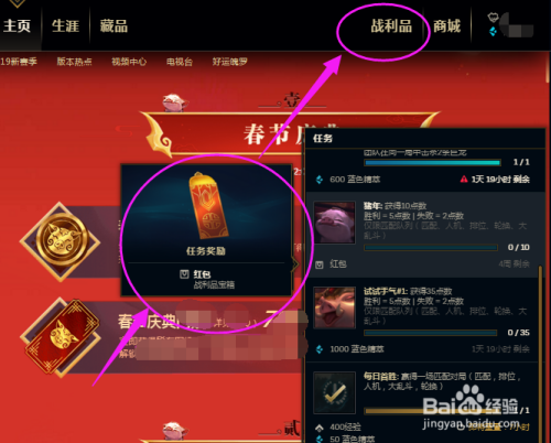 在完当作使命后,地址击(战利品)打开(红Bao)后,就能获得金猪币。
