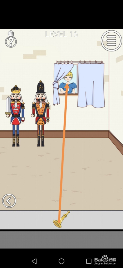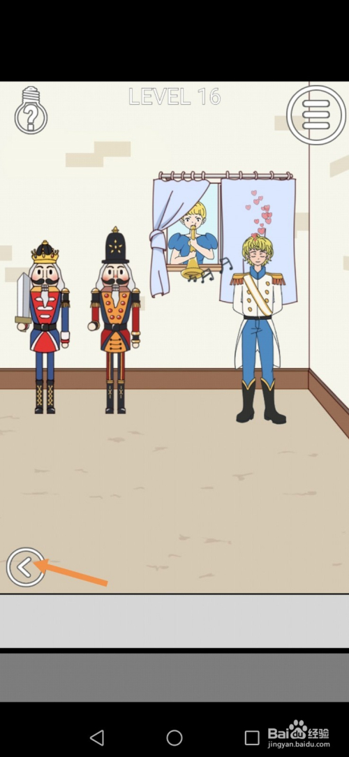 将喇叭拖动到窗户外的女孩身上,然后点击标的目的左箭头进入左边的房间。