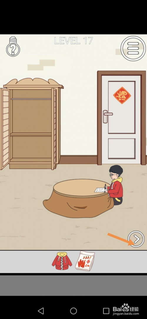 获得零食后,点击标的目的右箭头进入右边的房间。