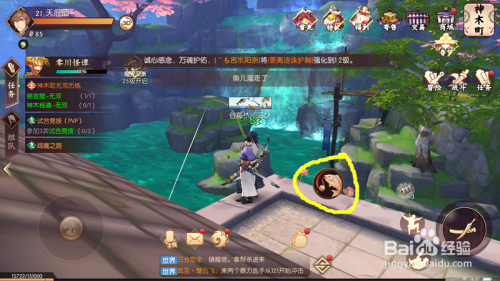 我们点击垂钓今后,等一会就会呈现一个圆圈的垂钓标记,如下图所示,我们点击这个标识。