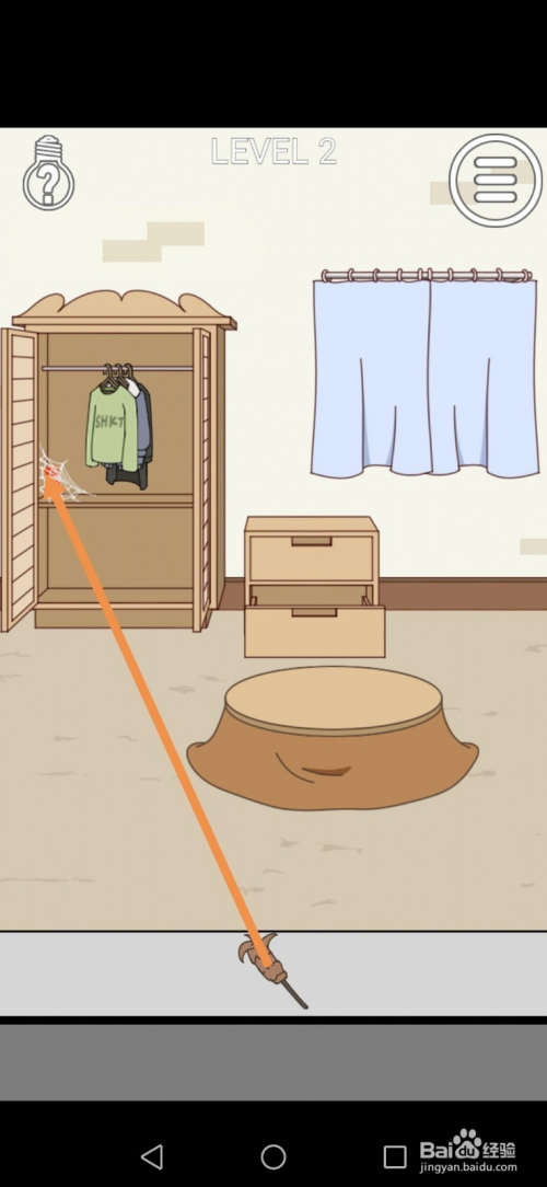 获得鸡毛掸后,先点击衣柜,衣柜打开后,将鸡毛掸拖动到蜘蛛网处。