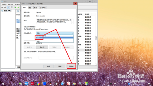 双击“print spooler”,将启动类型设置为“禁用”,点击“应用”即可。