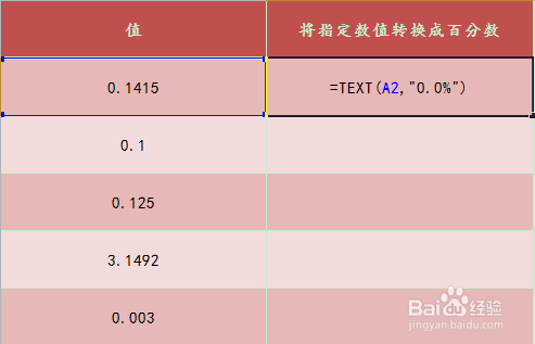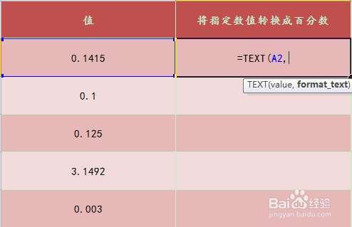 因TEXT函数的功能比力多,这里仅演示将数值转换为百分数;
