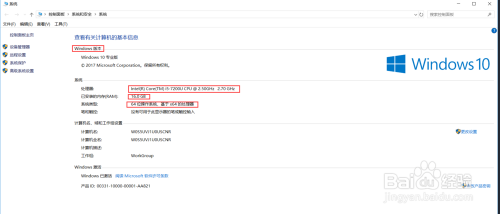 点击属性后可以看到如下界面,在此界面可以看到一些简单设置装备摆设,如电脑装的系统、CPU处置器型号、内存大小、操作系统位数等,这些简单的都可以在这个界面看到;