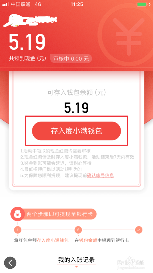 点击存入度小满钱包