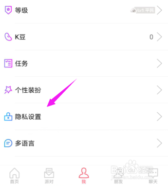 下方的【我】敲开后,【隐私设置】也快速的点按开,如图。