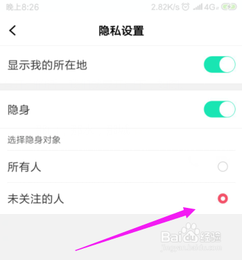 开启之后,我们设置权限,设置为【未存眷的人】,如图。