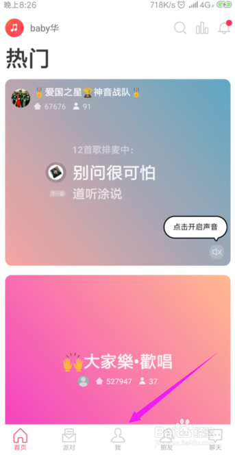 先按开软件下后,下方的【我】敲开,如图。