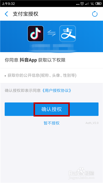 点击后即需要利用付出宝的授权,点击【确认授权】。