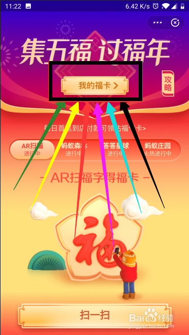 点击进入后就可以看到集五福过新年,此时点击如图所示的我的福卡进入我的福卡列表选项。