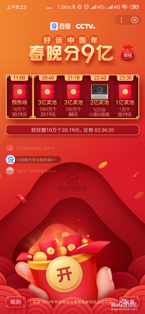 获取的红包可在春晚领9亿右侧的领钱处查看。