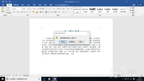 若是想保留点窜文档点击”确定“按钮,若是不想保留点击”否“按钮。
