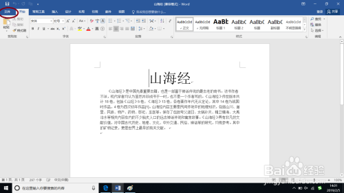 已经编纂好的文档界面中点击“文件”标签选项卡。