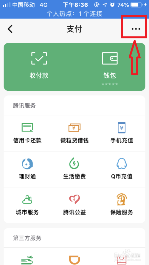 点击右上角“三个点”图标,进入“付出办理”页面。