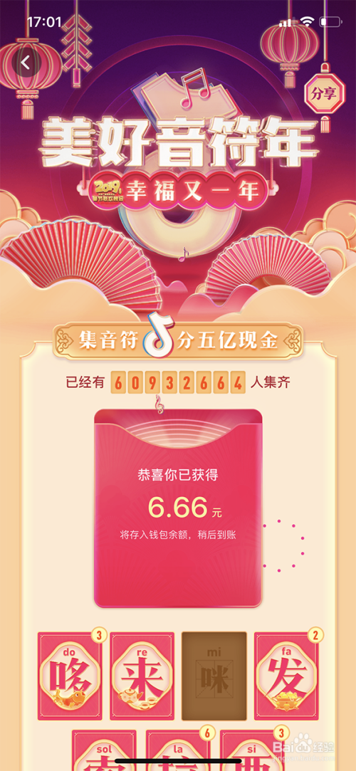 2019年抖音有集音符分现金的活动,良多伴侣在最后一刻经由过程全能符集齐了所有的符号,并且分到的现金也不少,那么这些现金音符红包应该怎么提现呢,接下来看教程。