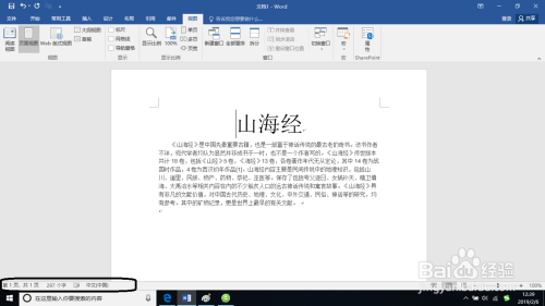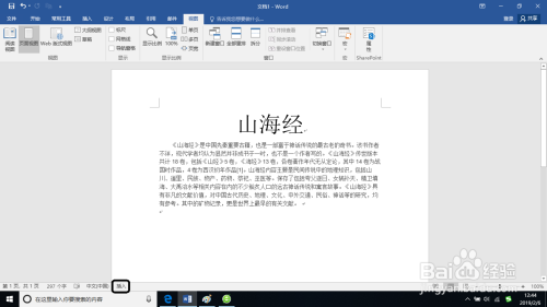 大师可能没看到在界面中的状况栏没有显示出“写入或插入”选项。