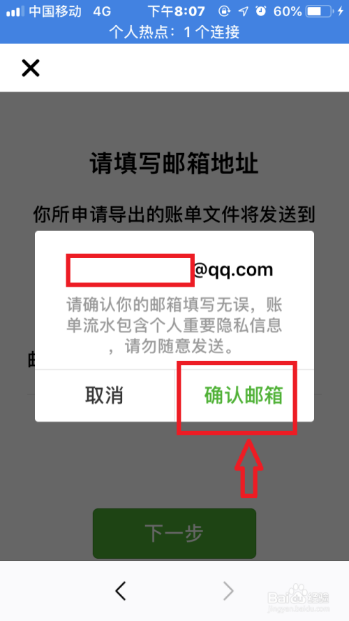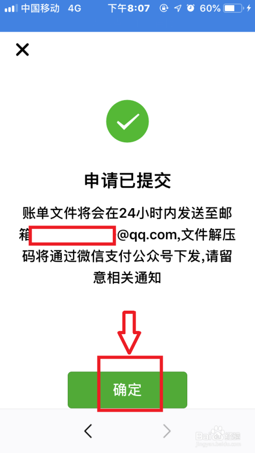 按照提醒填写并确认账单接收邮箱地址,输入付出密码验证身份,账单文件会24小时内发送至指定邮箱,公家号会发出动静提醒并含有“解压码”,输入“解压码”才能查看账单文件。