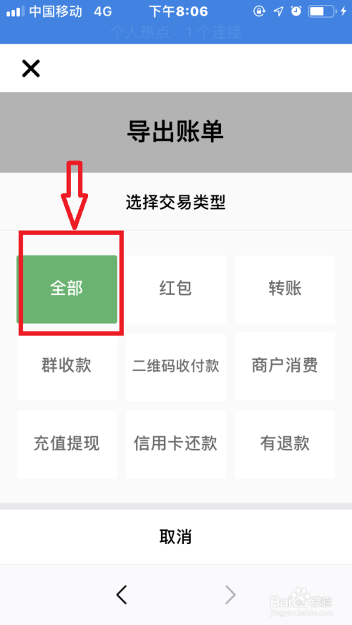 在账单页面,点击右上角“三个点”图标——“导出账单”,进入“账单导出”页面。