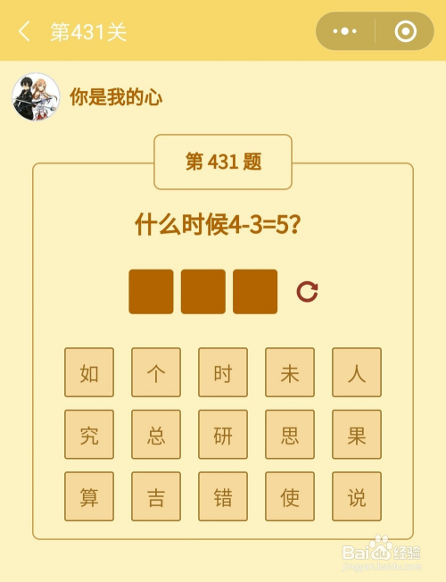 第431关谜底是算错时。