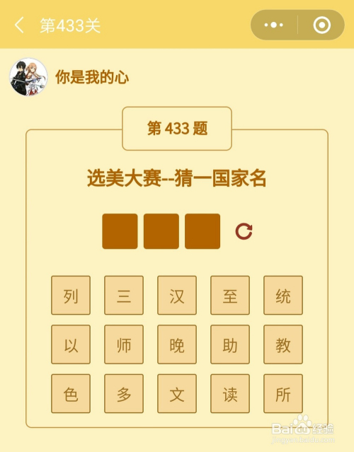 第433关谜底是以色列。