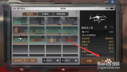进入背包界面之后,我们点击一下无人机就可以。然后在左鸿沟面点击放入机舱。