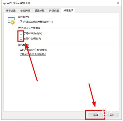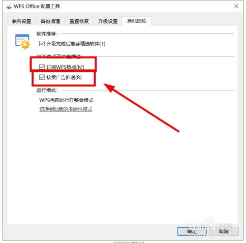 可以看到,法式默认“WPS热点及通知布告推送”项面前目今面的两项都是打开的(前面有对勾),想封闭单击该项,去失落前面的对勾即可