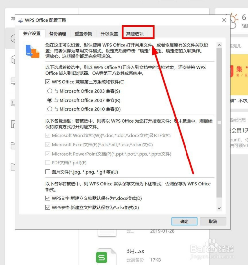 在“设置装备摆设东西”对话框,找到“其他选项”选项卡单击