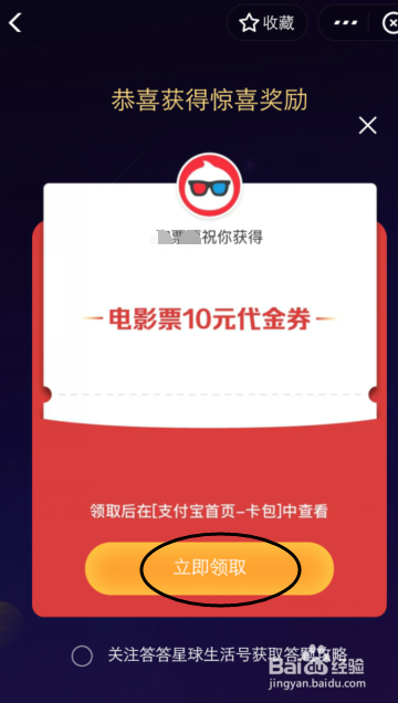 答对,就可以获得奖励,点击【当即领取】