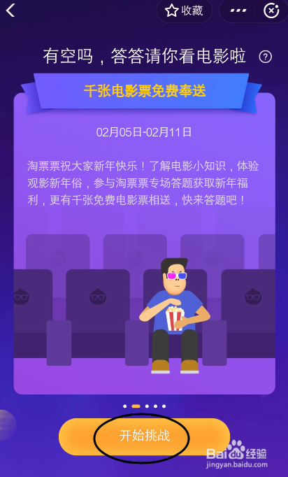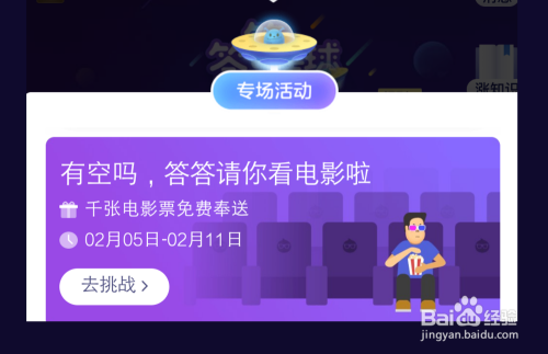 点击“专场活动”,选择【有空吗,答答请你看片子啦】页面,点击“去挑战”。