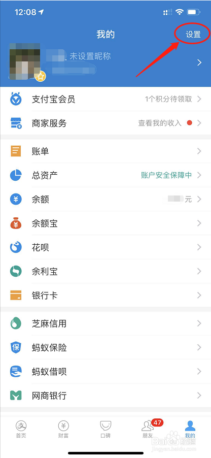 点击右上角的“设置”;