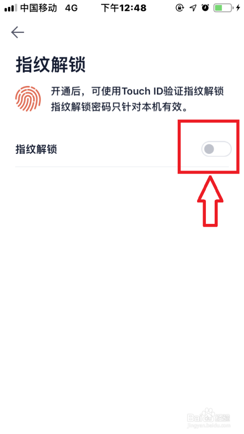 点击“指纹解锁”后面的按钮,验证指纹,即可开启“指纹解锁”。