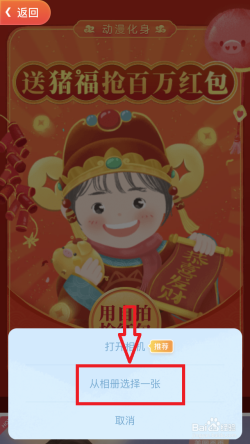 点击“用自拍抢红包”——“从相册选择一张”——“确认添加”,拍摄或选择照片。
