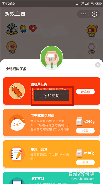 接下来就会提醒我们添加当作功,如许即可当作功添加蚂蚁庄园到付出宝首页。