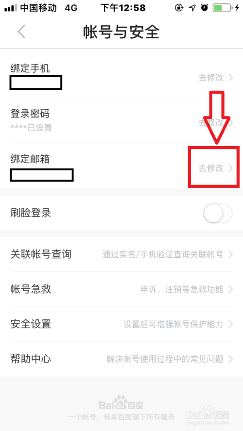- 进入“账号与平安”设置,点击“去点窜”,即可进行邮箱点窜。