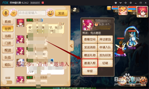 步调二:这是时辰,界面上会呈现今后菜单。玩家点击菜单中的“邀请入帮”。该名玩家赞成即可当作功招到人入帮。