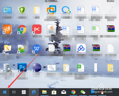 打开win10笔记本电脑后,直接点击桌面左下角的开始菜单,如下图所示。