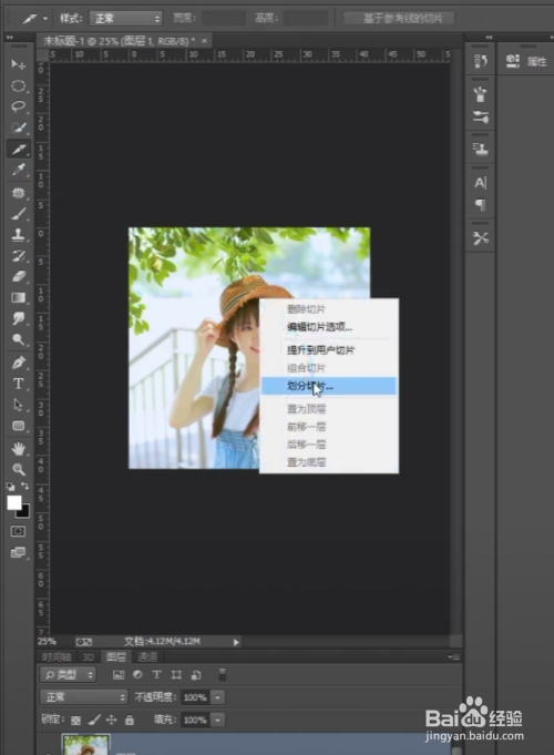 第四步:在弹出的菜单栏中选择切分切片。